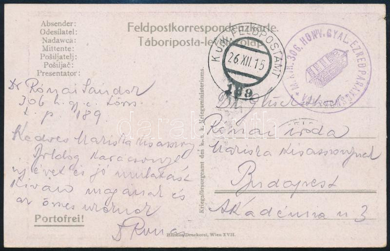 https://www.darabanth.com/en/506-Online-auction/506.0/Hungarian-philately-and-postal-history/Austro-Hungarian-fieldpost-WWI~39/1915-Tabori-posta-kepeslap-M-KIR-306-HONV-GYAL-EZRED-PARANCSNOKSAGA-plus-FP-189~II3431545