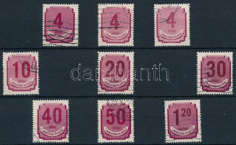 1950 Forint-filléres portó II. 9 db bélyeg számvízjellel