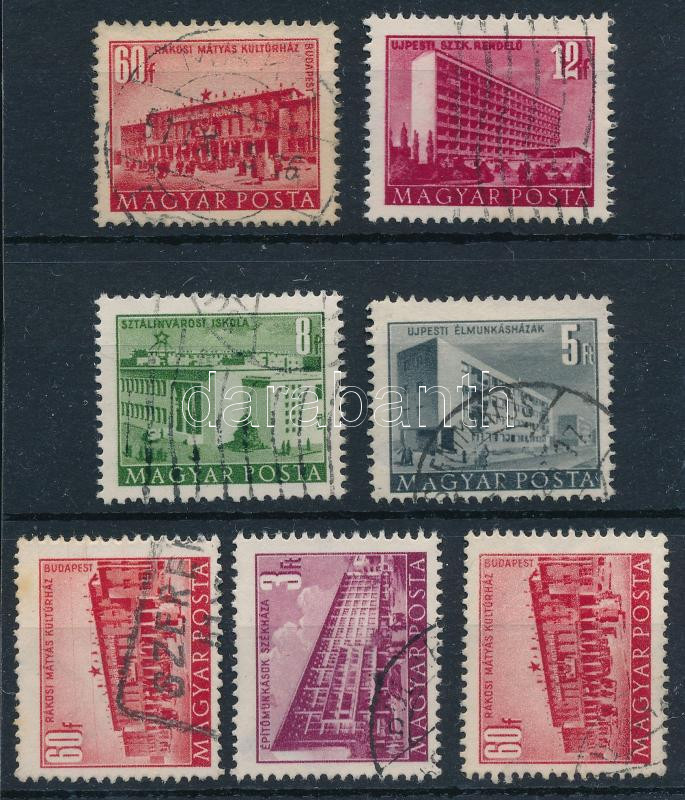 https://www.darabanth.com/en/506-Online-auction/506.0/Hungarian-philately-and-postal-history/Issues-between-1946-1956~51/1951-Epuletek-I-7-db-belyeg-szamvizjellel~II3271722