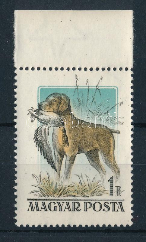 1956 Magyarországi kutyafajták 1Ft ívszéli bélyeg "tarajos réce&q...