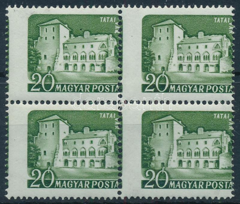 1960 Várak színes papíron 20f négyestömb látványosan elfogazva