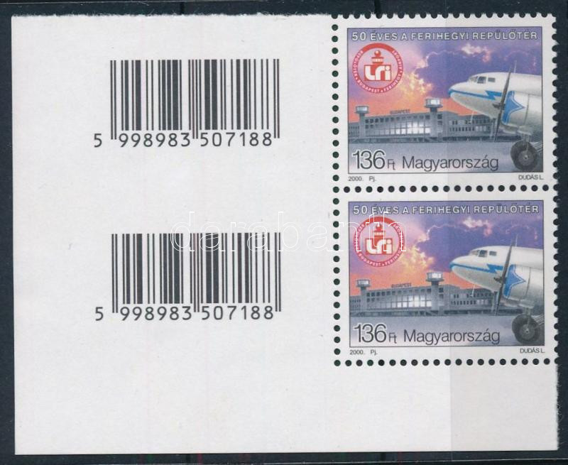 2000 50 éves a Ferihegyi repülőtér vonalkódos ívsarki pár (ujjlenyomat...