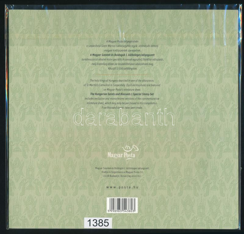 https://www.darabanth.com/en/506-Online-auction/506.0/Hungarian-philately-and-postal-history/Issues-between-2010-2019~58/2013-Magyar-szentek-es-boldogok-I-belyegszett-bontatlan-csomagolasban-No-1385-13000~II3433634