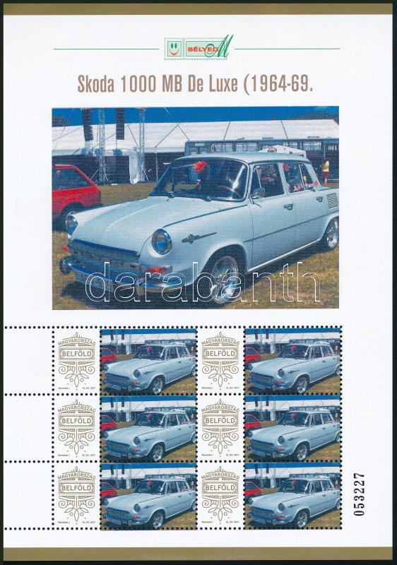 https://www.darabanth.com/en/506-Online-auction/506.0/Hungarian-philately-and-postal-history/New-issues-from-2020~59/2025-Skoda-1000-MB-De-Luxe-1964-69-megszemelyesitett-hatos-kisiv-disztokban~II3434578