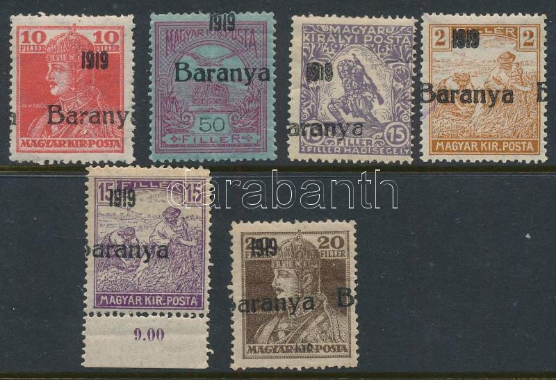 Baranya 1919 6 db bélyeg elcsúszott felülnyomattal, Bodor vizsgálójell...