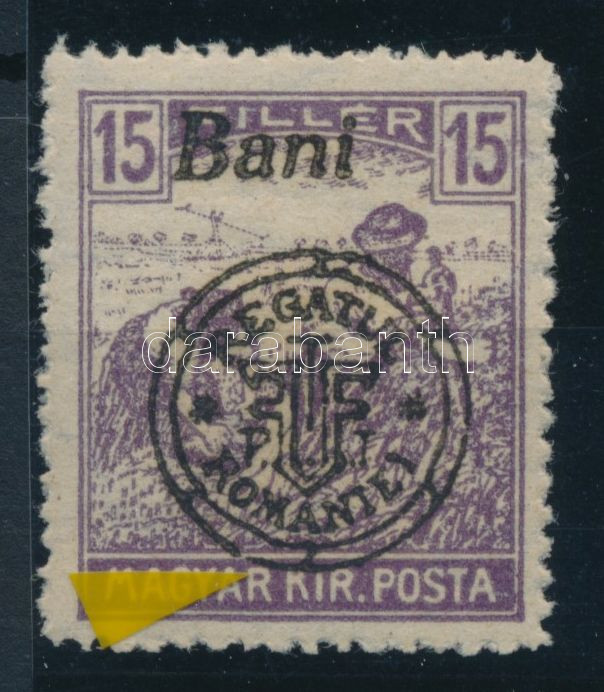 https://www.darabanth.com/en/506-Online-auction/506.0/Hungarian-philately-and-postal-history/Occupation-and-local-issues-1919-1921-with-guarantee~45/Nagyvarad-1919-Arato-15f-hurkas-kor-lemezhibaval-a-felulnyomatban-Bodor-vizsgalojellel~II3401209