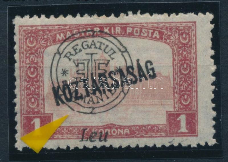 https://www.darabanth.com/en/506-Online-auction/506.0/Hungarian-philately-and-postal-history/Occupation-and-local-issues-1919-1921-with-guarantee~45/Nagyvarad-1919-ParlamentKoztarsasag-1K-hurkas-kor-lemezhibaval-a-felulnyomatban-Bodor-v~II3401219
