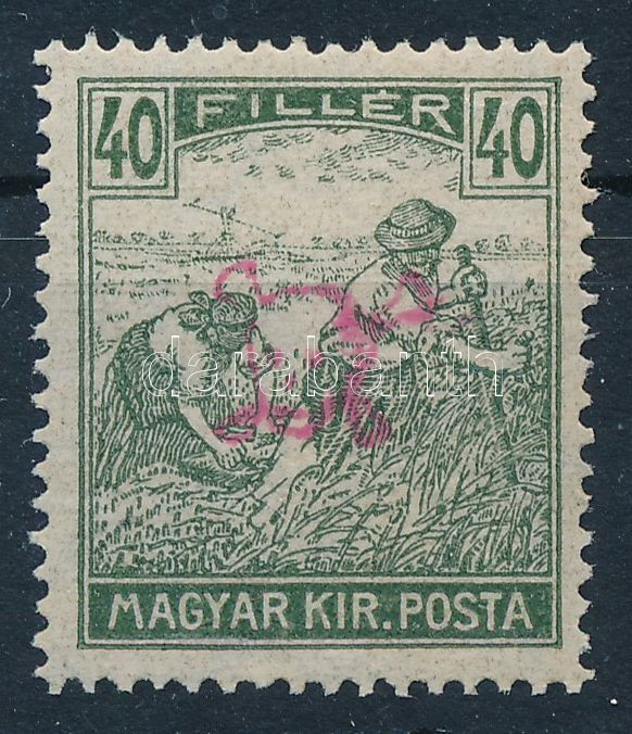 Nyugat-Magyarország II. 1921 Arató 40f próbanyomat szöveg és évszám nélkül, Bodor vizsgálójellel