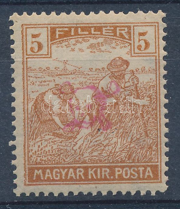 Nyugat-Magyarország II. 1921 Arató 5f próbanyomat szöveg és évszám nélkül, Bodor vizsgálójellel