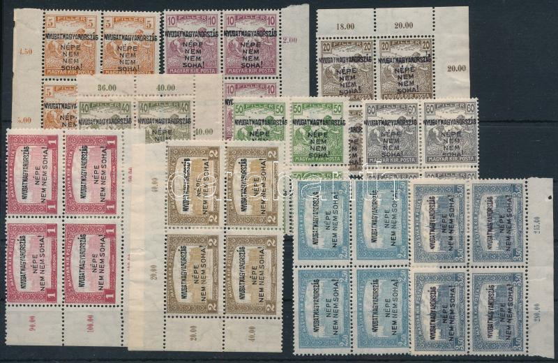 Nyugat-Magyarország IV. 1921 Sor 4-es tömbökben, Bodor vizsgálójellel (15f hiányzik / missing)
