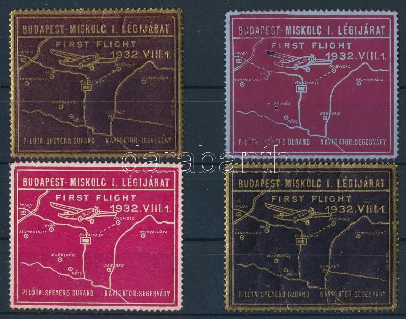 1932 Budapest-Miskolc I. légijárat 4 db levélzáró (az egyiken lyukak /...