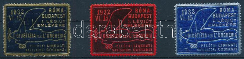 1932 Róma-Budapest I. légi út emlékére 3 db levélzáró