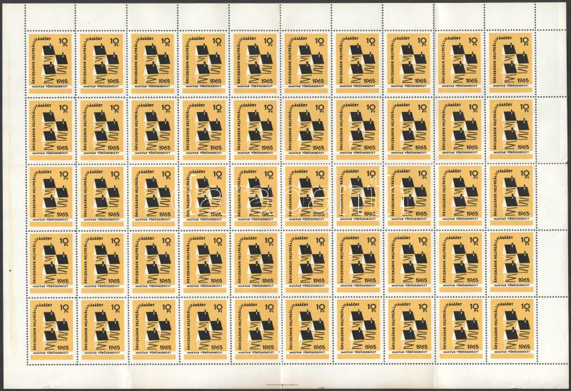 1965 Árvíz 10Ft adománybélyeg hajtott 50-es teljes ív