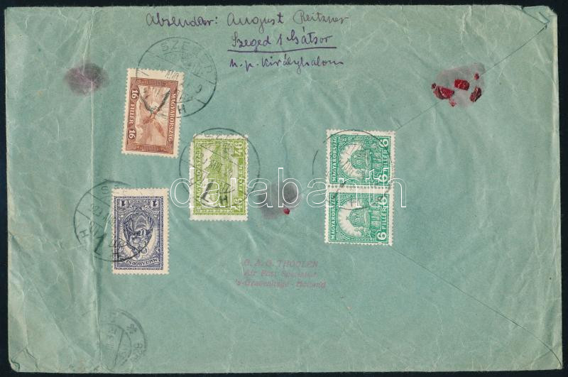 1929 Ajánlott légi levél Szegedről Hollandiába 1,74P bérmentesítéssel