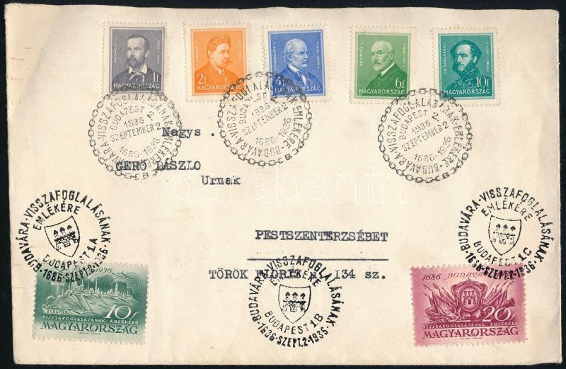 1936 Levél 7 db bélyeggel és "BUDAVÁRA VISSZAFOGLALÁSÁNAK EMLÉKÉRE" alkalmi bélyegzéssel