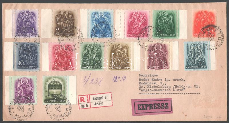 1938 3 db expressz ajánlott levél, köztük teljes Szent István sor és 2...