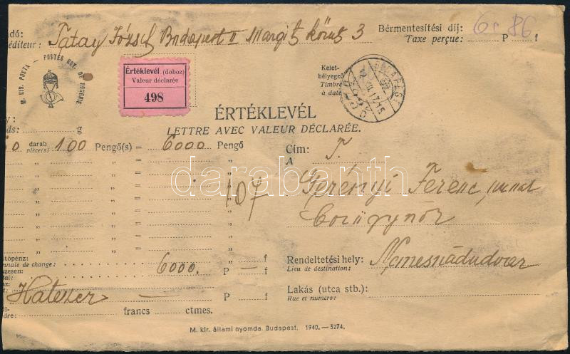 https://www.darabanth.com/en/506-Online-auction/506.0/Hungarian-philately-and-postal-history/Pengo-period-1926-1944~47/1942-Erteklevel-5-86P-bermentesitessel-Budapestrol-Nemesnadudvarra~II3289404