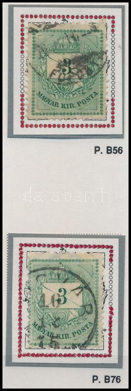 1874 2 db Színesszámú 3kr durva gyöngyjavítással, ritka (ex Orbán, Seb...
