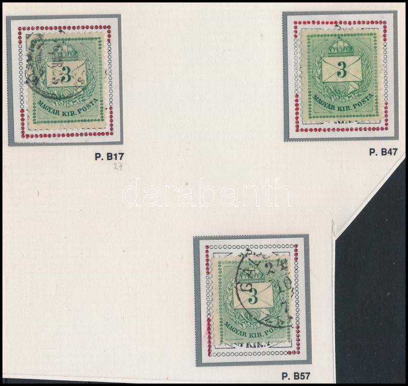 1874 3 db Színesszámú 3kr durva gyöngyjavítással, ritka (ex Orbán, Seb...