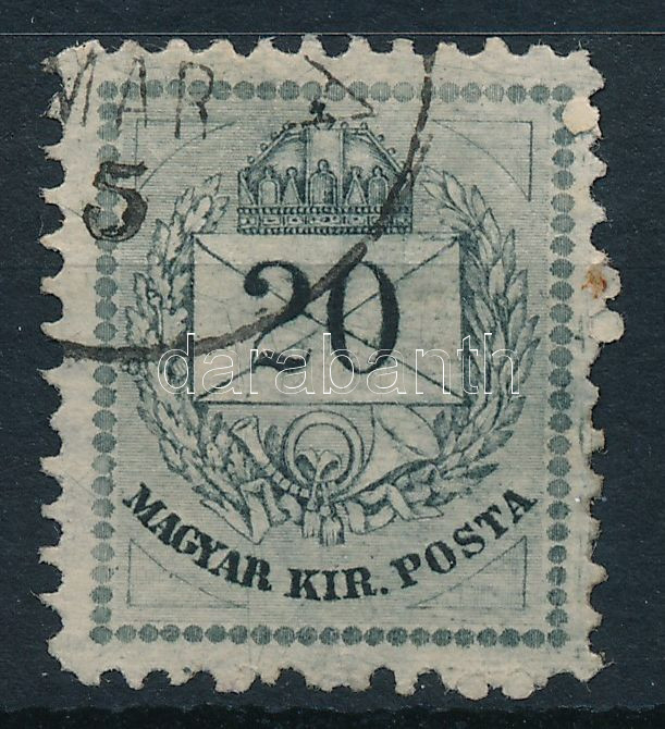 https://www.darabanth.com/en/506-Online-auction/506.0/Hungarian-philately-and-postal-history/The-issues-between-1874-1899~32/1881-Szinesszamu-20kr-11-12-fogazassal-I-tipus-racshalos-papiron~II3433030
