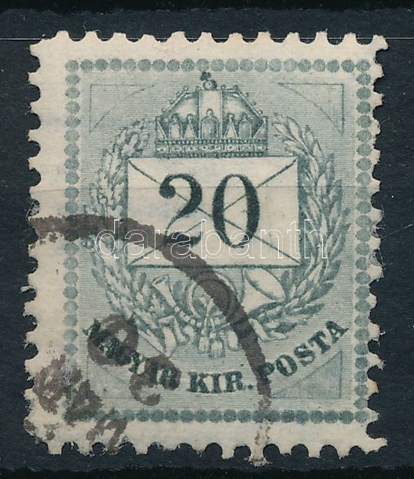 https://www.darabanth.com/en/506-Online-auction/506.0/Hungarian-philately-and-postal-history/The-issues-between-1874-1899~32/1881-Szinesszamu-20kr-11-12-fogazassal-kivagason-vesetjavitas-a-jobb-also-haromszogben~II3432895