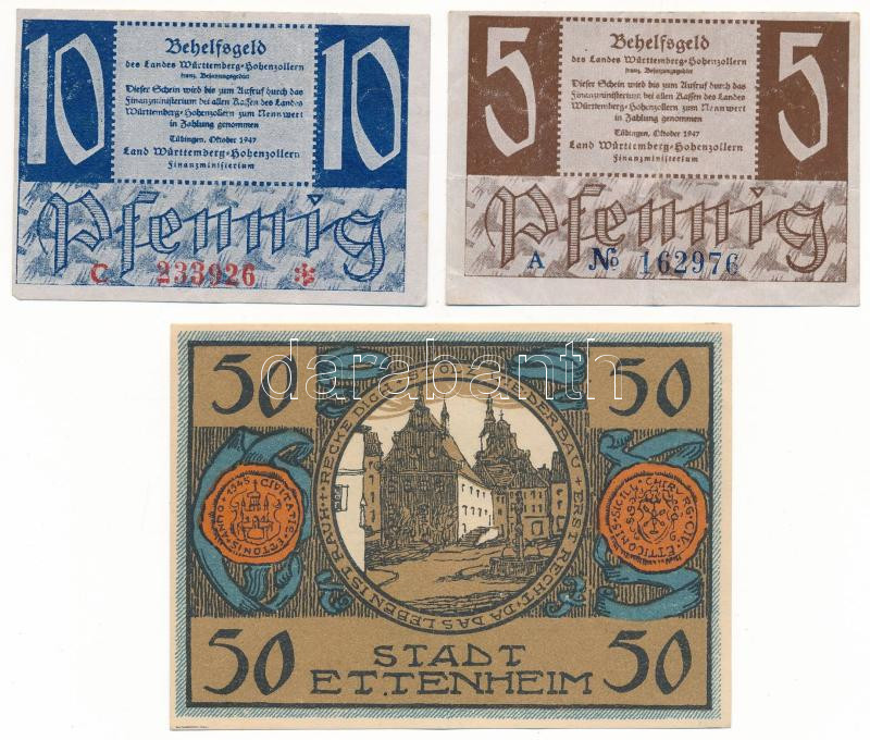 Németország / Weimari Köztársaság 1922. 50pf szükségpénz + Németország / Szövetséges megszállás 5pf + 10pf "Behelfsgeld" szükségpénzek T:XF,F