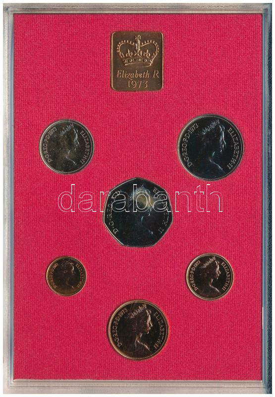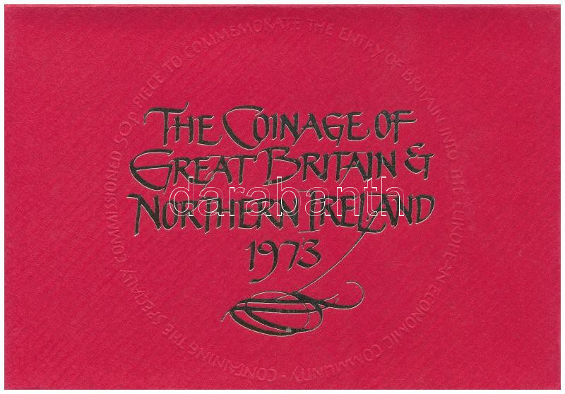 Nagy-Britannia 1973. 1/2p-50p (6xklf) hivatalos forgalmi sor lezárt dísztokban, borítékban, közte 1973. 50p Cu-Ni "Belépés az Európai Gazdasági Közösségbe" + "1973. Elizabeth R / Royal Mint" verdei zsetonnal T:PP, kis patina