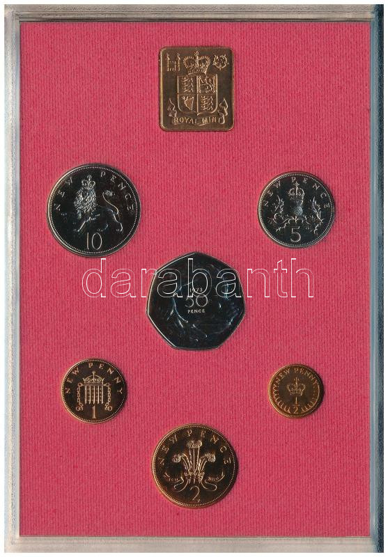 Great Britain 1973. 1/2 New Penny - 50 New Pence (6xdiff) official coin set in sealed case, in envelope, including 1973. 50 New Pence Cu-Ni "Britain's entry into E.E.C." + with "1973. Elizabeth R / Royal Mint" jeton C:PP, small patina