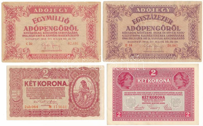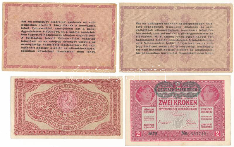 1917. 2K zöld "DEUTSCHÖSTERREICH" felülbélyegzéssel + 1920. 2K csillagos sorszámmal + 1946. 100.000AP sorszámmal, vízjeles papíron + 1.000.000AP sorszámmal, vízjeles papíron T:XF-VG