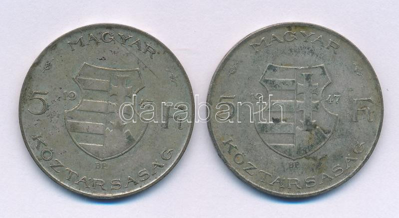 https://www.darabanth.com/en/506-Online-auction/506.0/Numismatics/Hungarian-coins-and-coins-with-Hungarian-mint-marks~267/1947-5Ft-Ag-3Cem3EKossuth3Cem3E-2x-TVF-F-patina3Cbr-3E-Adamo-F81~II3431119