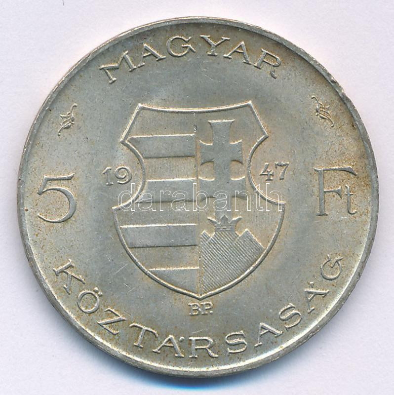 https://www.darabanth.com/en/506-Online-auction/506.0/Numismatics/Hungarian-coins-and-coins-with-Hungarian-mint-marks~267/1947-5Ft-Ag-Kossuth-TAU-patina-Adamo-F81~II2895715