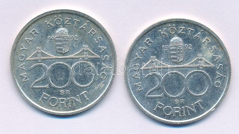 1992. 200Ft Ag "MNB" (2x) T:AU,XF patina