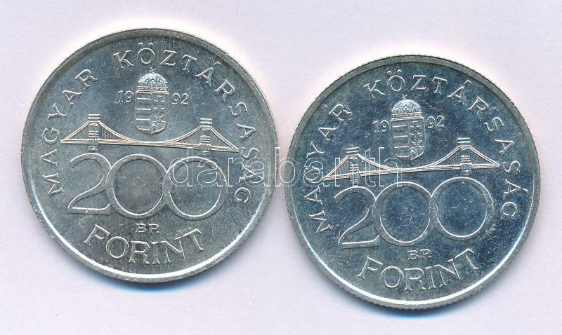 1992. 200Ft Ag "MNB" (2x) T:AU,XF patina