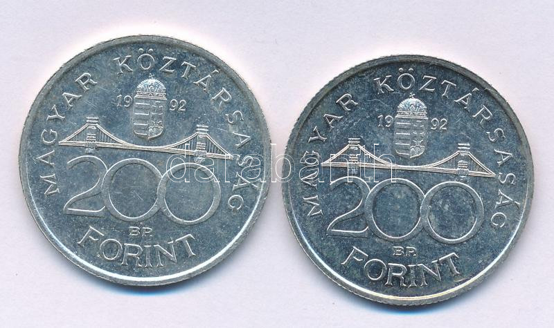 1992. 200Ft Ag "MNB" (2x) T:AU kis patina