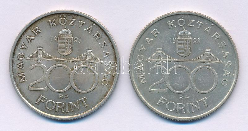 1993. 200Ft Ag "MNB" (2x) T:AU,XF patina