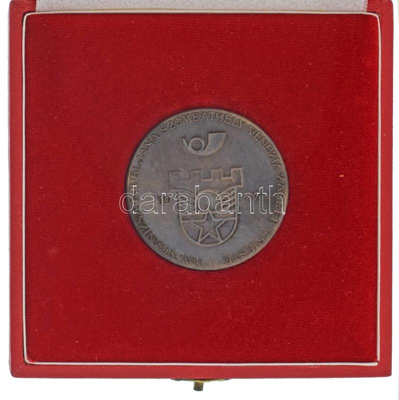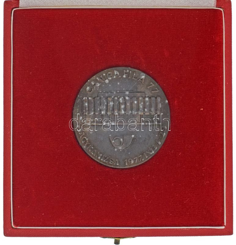 Description: 1977. "Canisa Fila 77 - Nagykanizsa 1977. IX. 24-29 / Nagykanizsa Ljubljana Szombathely Venezia Zagreb Trieste " fém emlékérem az 1977-es kanizsai bélyegkiállításról, eredeti tokban (49mm) T:XF