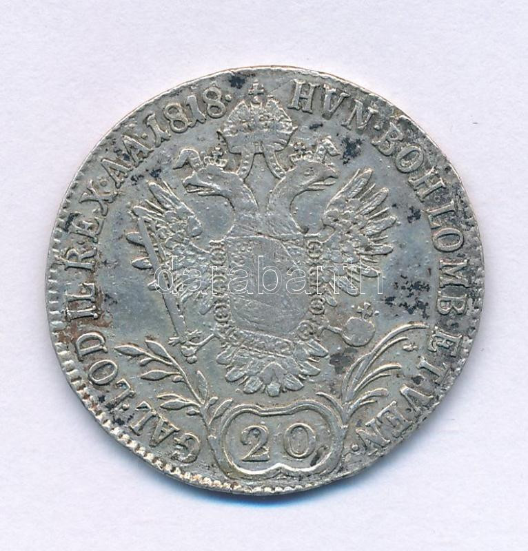 1818B 20kr Ag "I. Ferenc" Körmöcbánya (6,46g) T:VF, patina