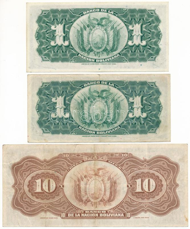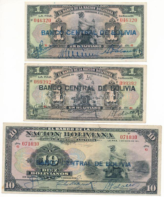Description: Bolívia DN(1929) 1B (2xklf: fekete- és kék "BANCO CENTRAL DE BOLIVIA" felülbélyegzésekkel) + 10B kék "BANCO CENTRAL DE BOLIVIA" felülbélyegzéssel T:F, közte szép papír