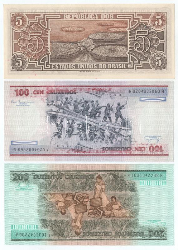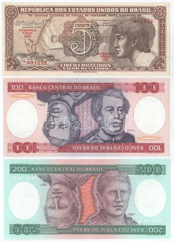 Brazil ND(1962) 5 Cruzeiros + ND(1981) 100 Cruzeiros + 200 Cruzeiros C:UNC,AU