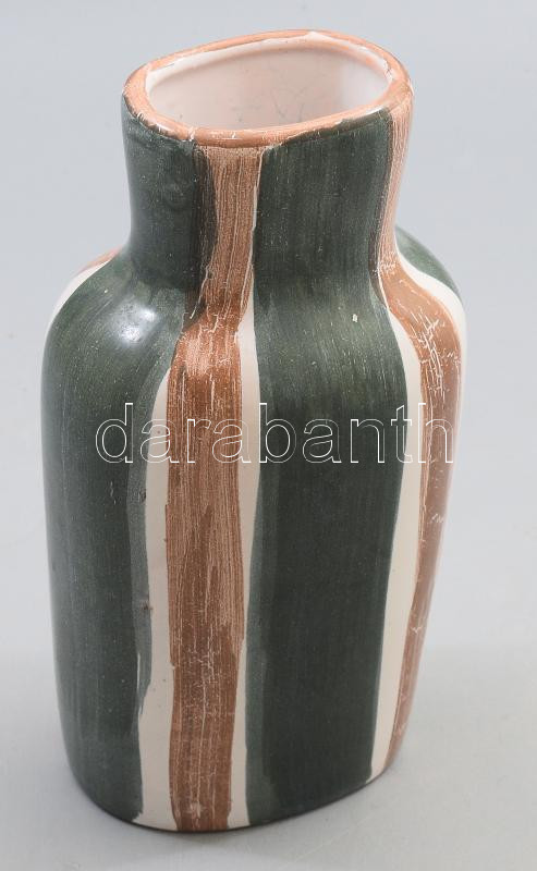 Kerezsi Gyöngyi (1943-): Vonalas váza, jelzett, mázhibával, m: 21 cm