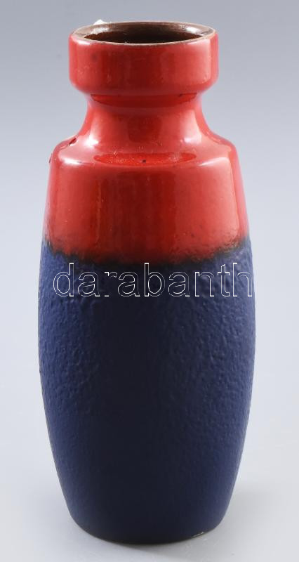Retro német piros-kék váza. Jelzett, kis kopással, m: 18,5 cm