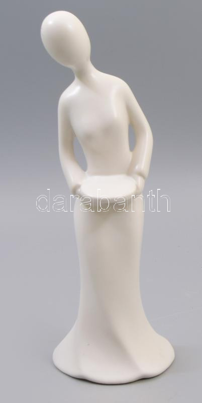 Nő tállal, stilizált porcelán figura, jelzés nélkül, hibátlan, m: 25,5 cm