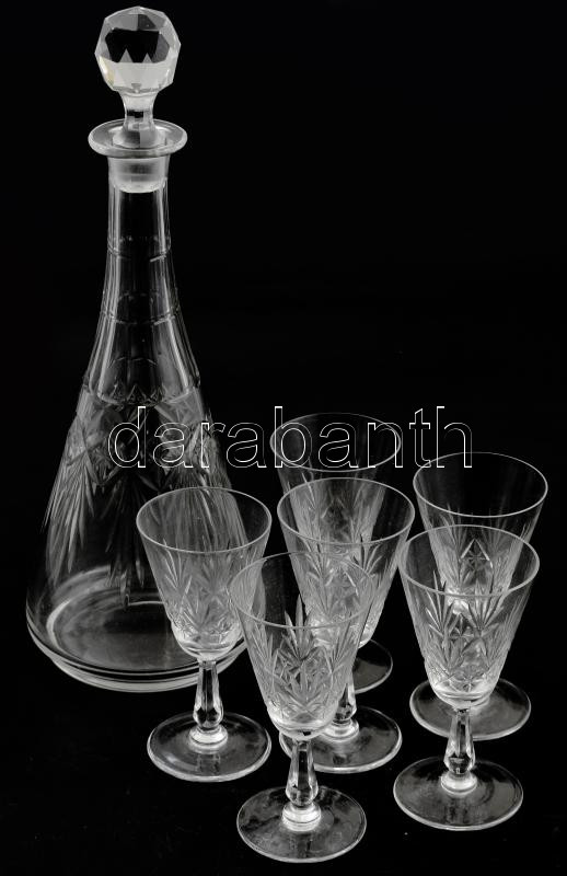 Antik kristály italos készlet, dugós üveggel, jelzés nélkül, poharak m...