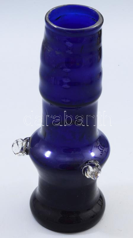 Iparművész királykék hutaüveg váza, hibátlan, m: 23 cm