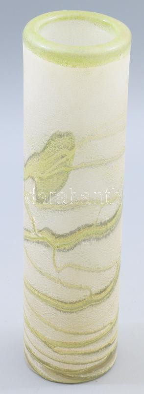 Savmaratott desgin üveg hengerváza, hibátlan, m: 28 cm