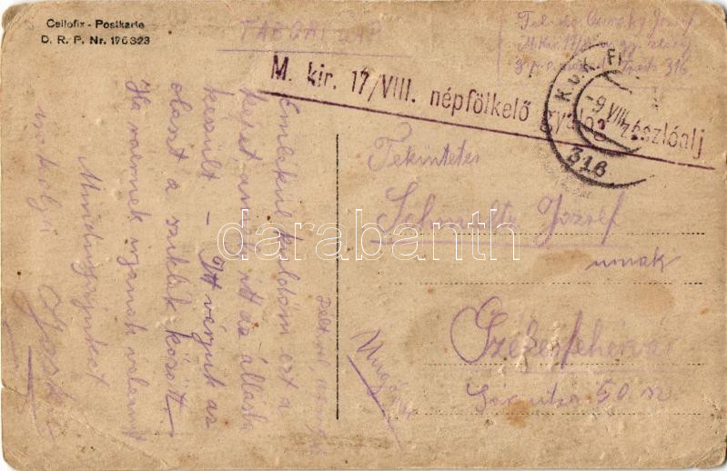 1917 Cziráky József gyalogos. Tábori posta / WWI Austri-Hungarian K.u.k. military, soldier. photo + "M. kir. 17/VIII. népfölkelő gyalog zászlóalj" + "K.u.k. Feldpostamt 316" (tűnyomok / pinmarks)