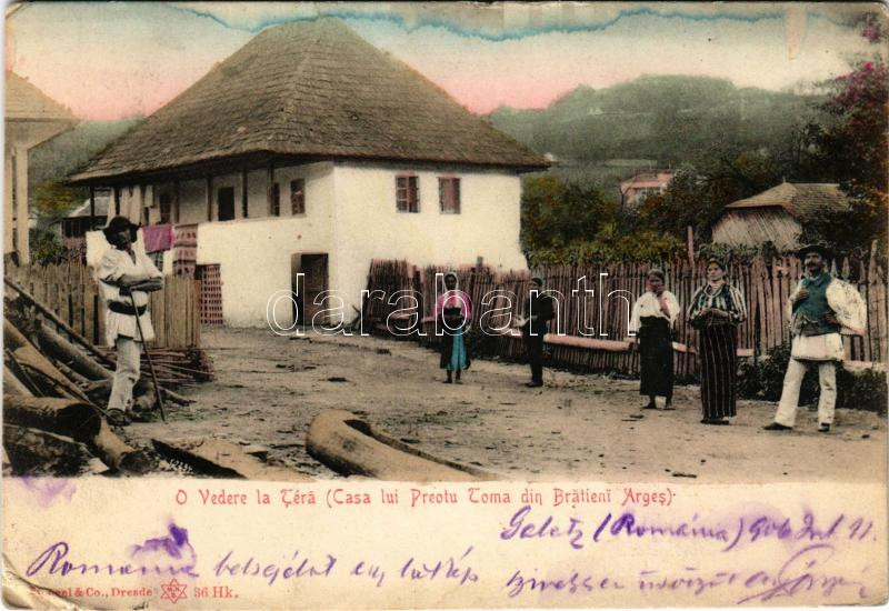 1906 Bucharest, Bukarest, Bucuresti; O Vedere la Téra (Casa lui Preotu Toma din Bratieni Arges). Stengel & Co. (Dresden) / House of the priest (fl)