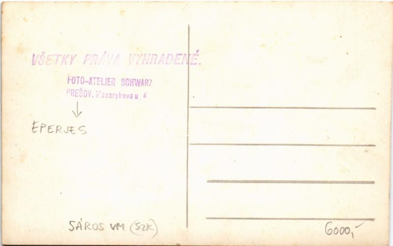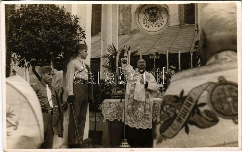 Eperjes, Presov; ünnepség, pap és darutollas leventék / celebration, priest, soldiers with crane feathers. Foto Atelier Schwarz photo