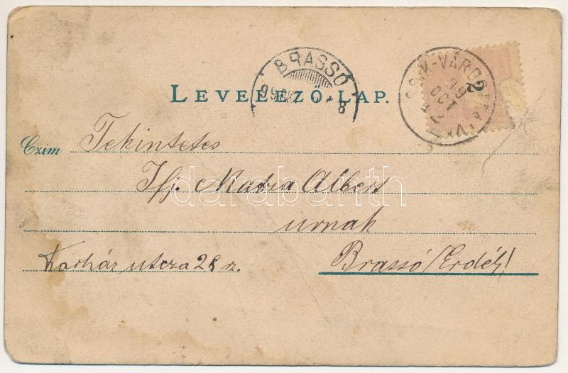 1899 CsÃkszereda, Szereda, Miercurea Ciuc; Gyimesi vasútállomás, Megyeház, Györgyjakab Márton könyvnyomdája, könyvkereskedés üzlete és a "Csiki Lapok" kiadója. Adler Alfréd fényképész / Ghimes railway station, county hall, publishing house and printing shop. Art Nouveau, floral (EM)
