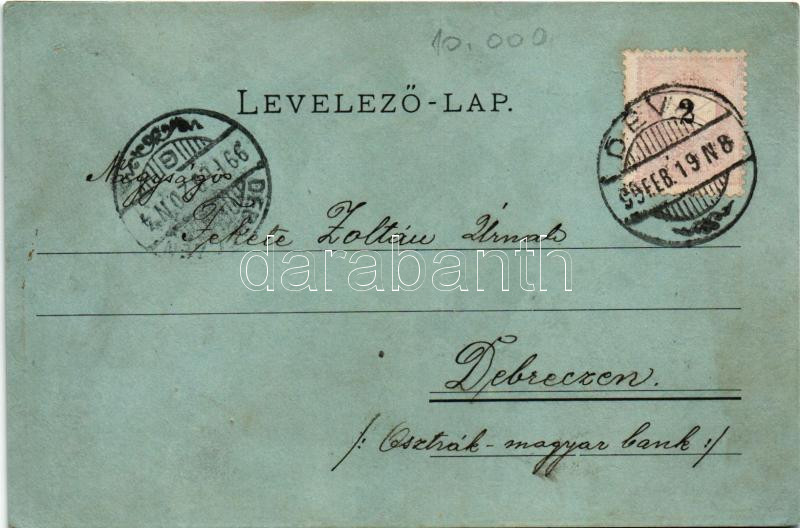 Description: 1899 Déva, utca, vár a háttérben, Lengyel Dániel, Pap, Schuleri Fritz üzlete este holdfényben. Hirsch Adolf kiadása / street, shops, castle at night in moonligth (EM)
